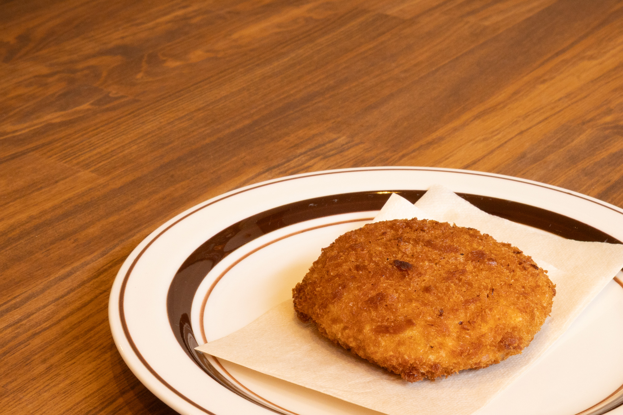 ホクホク系のコロッケにたっぷりのソースをかけています。コロッケに負けないようにマヨネーズはしっかり多くしています!