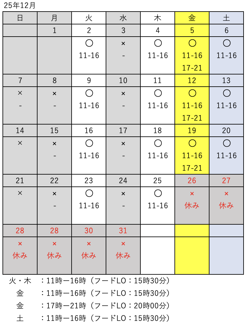 営業日:週4日営業です!